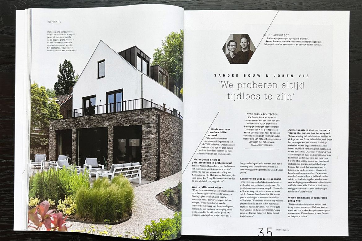 In de special Vtverbouwen van VT wonen deze keer een interview met FOAM en een aantal voorbeelden van onze projecten die passen bij het thema van deze editie: "Extra m2 aan je huis".