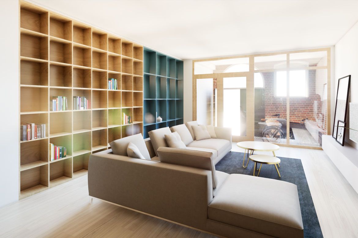 Voor dit bijzondere pakhuis in Schiedam ontwierpen we een nieuwe indeling van de begane grond als 'doos-in-doos'. Met deze aanpak was het mogelijk de diverse problemen op deze verdieping, van scheefstand tot een lastige vochthuishouding adequaat op te lossen. De uitvoering van het project start binnenkort door Sens Bouw.