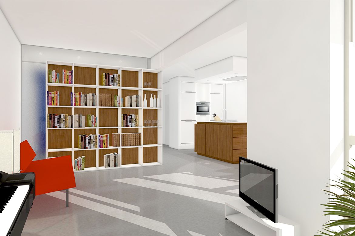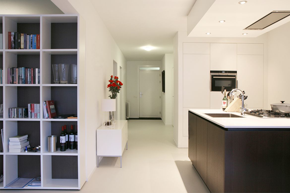 Een ingrijpende verbouwing van een jaren '80 appartement in Maastricht creëert meer openheid, ruimte en licht in de woning. Alle overbodige wanden en deuren worden verwijderd zodat er één continue ruimte ontstaat. Het appartement wordt getransformeerd tot de essentie van wonen: woonkamer, slaapkamer, badkamer en keuken vloeien geleidelijk in elkaar over en zorgen voor bijzondere ontmoetingen, doorzichten en routes, ondersteund door een aantal specifiek ontworpen meubelen.