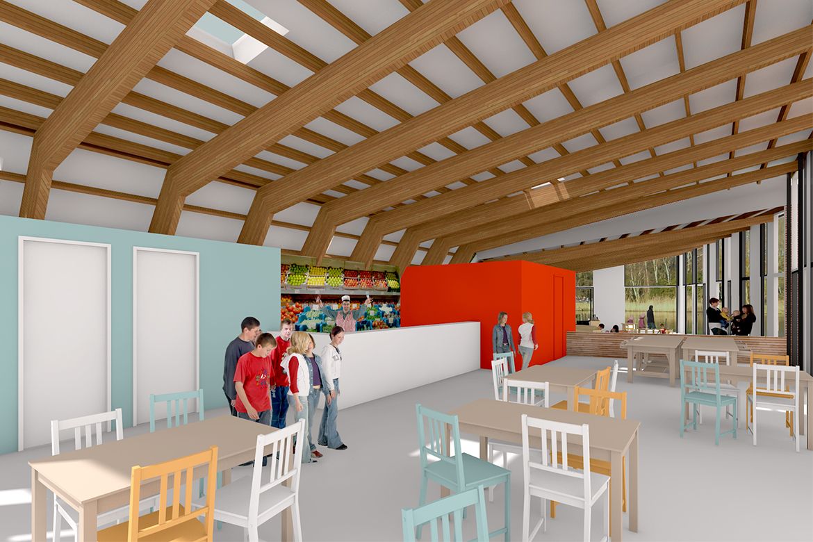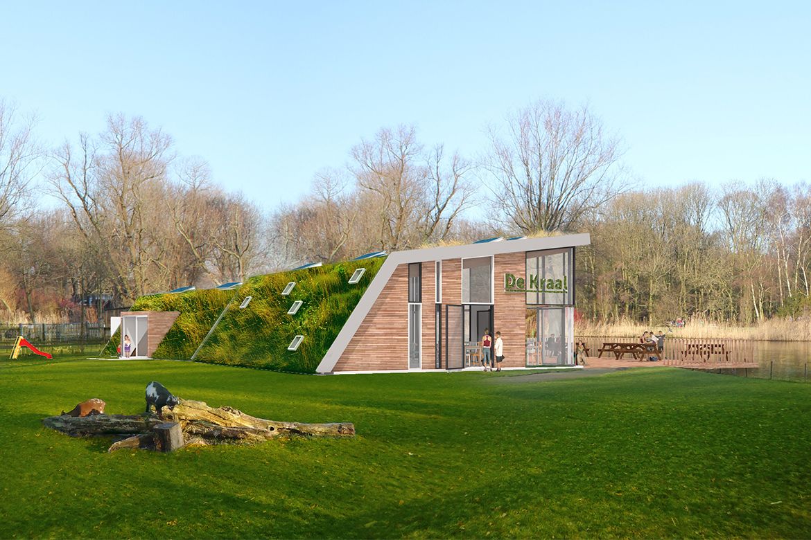 Het nieuwe gebouw gaat op in de groene omgeving van het Kralingse Bos, maar vormt tegelijkertijd een duidelijk herkenningspunt voor bezoekers van het bos. De functie van het gebouw is net zo hybride: Naast functies voor de boerderij zelf zal het een duurzaamheidscentrum, kinderopvang, kantoorruimte en flexibel te gebruiken ruimtes herbergen.