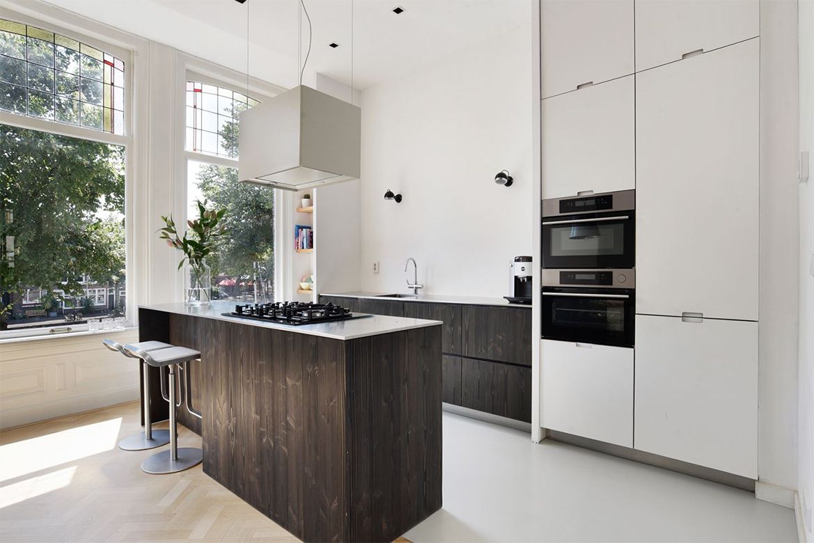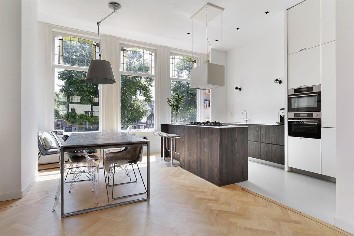 Net als in de huidige situatie zal de woonkamer en de keuken op de eerste verdieping komen. Het kleine keukentje dat nu aan de acherkant zit maakt plaats voor een aparte tv-kamer. Op de mooiste plek van het huis, aan de voorkant met het uitzicht over het water, komt een grote leefkeuken met kookeiland. Hier zullen onze opdrachtgevers het meest vertoeven. Aan de achterzijde van de woonkamer, bij de openslaande deuren naar het balkon, komt een intieme zithoek. De markante schouw die eerst aan de voorzijde van de woning zat wordt zorgvuldig verplaatst en zal het middelpunt van de nieuwe zithoek vormen.