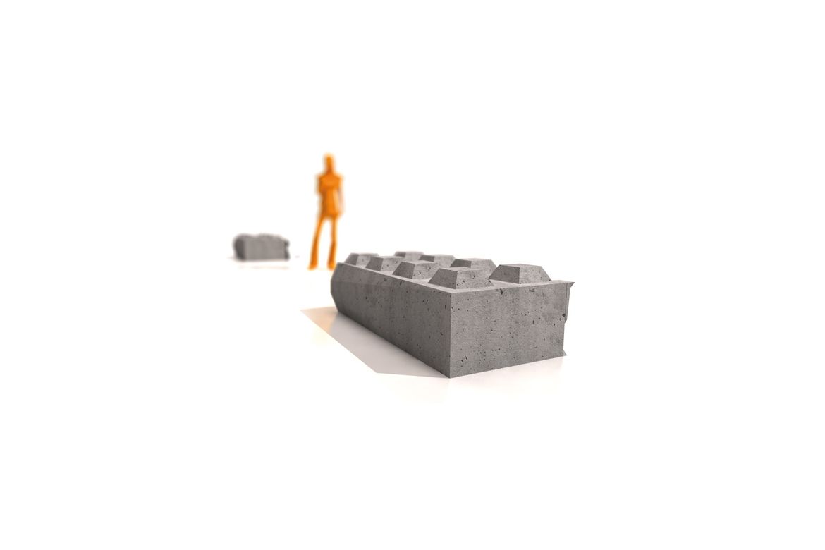 Uit financieel oogpunt is gebruik gemaakt van een standaard bouwproduct: het ‘Legioblock’. De betonnen, 1200 kilo wegende variant van de klassieke legosteen vormt de basis van de 200 meter lange geluidsmuur. De vraag die FOAM zich stelde: “Hoe kan er met een simpele betonnen legosteen een interessant geheel gemaakt worden voor zowel de scouting als de publieke zijde van de geluidsmuur?”. Het concept voor het uiteindelijke ontwerp is even bijzonder als het simpel is. Uitgaande van de gedachte om slechts één steen te manipuleren is de ‘Smart Stone’ ontwikkeld: een unieke steen die alle facetten van het programma bevat en 1200 keer gebruikt wordt in de geluidsmuur.