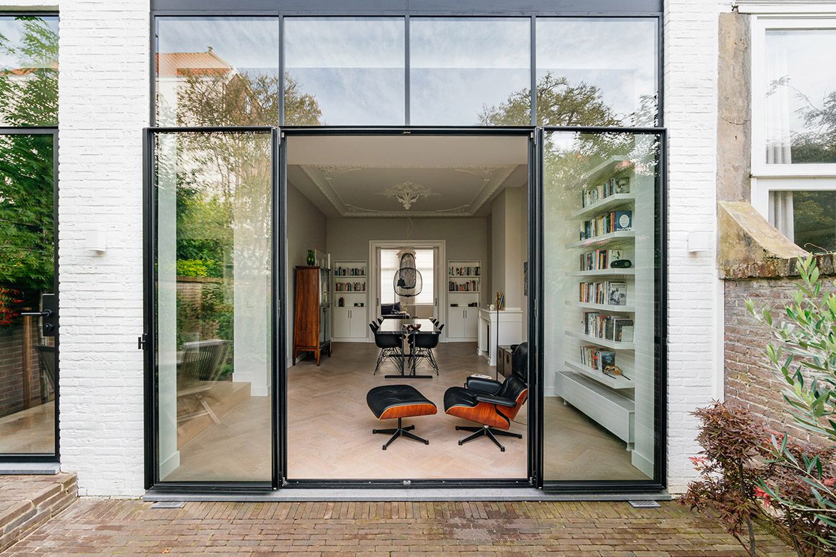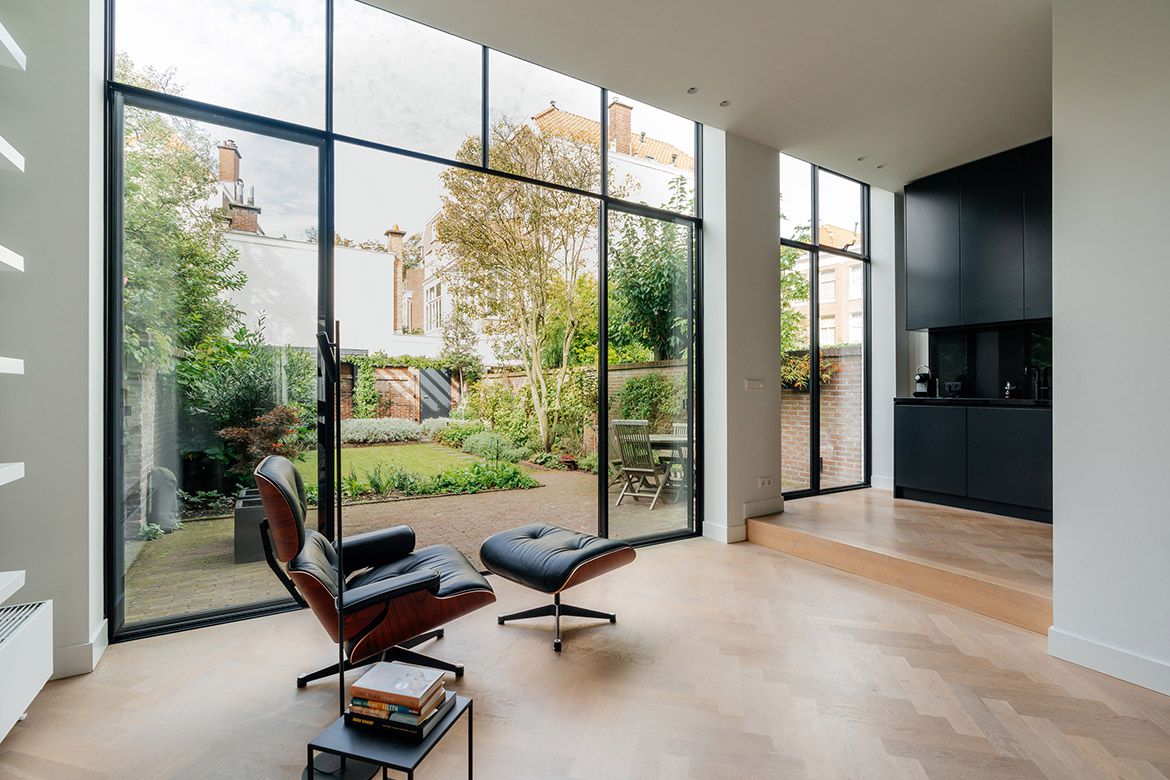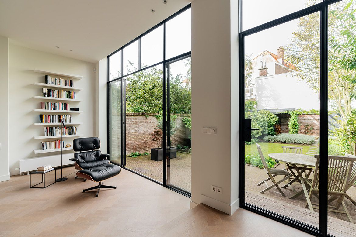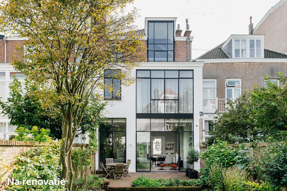In hartje Den Haag renoveerden we dit statige herenhuis. Op de begane grond en eerste verdieping is de totale achtergevel vervangen door een nieuwe, goed geïsoleerde achtergevel voorzien van stalen kozijnen via Perfect View. De oorsponkelijk rommelige achtergevel, die voorheen bestond uit een drietal compleet verschillende etages met een veelheid aan soorten kozijnen, is nu vereenvoudigd naar een duidelijk leesbaar geheel. Hierin wordt de focus gelegd op de verticale lijnen in de gevel, en wordt de terugliggende gevel op de tweede etage weer in het geheel betrokken door het toepassen van eenzelfde stalen kozijn.