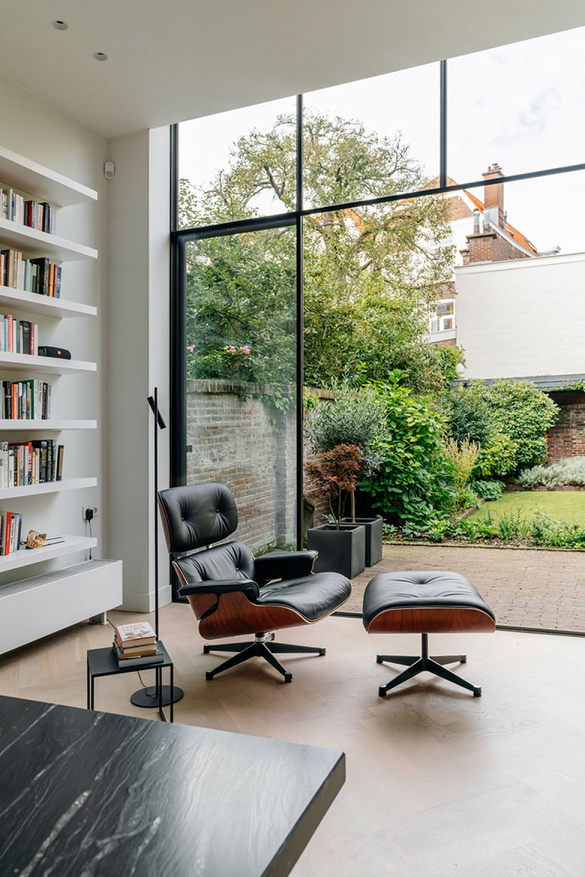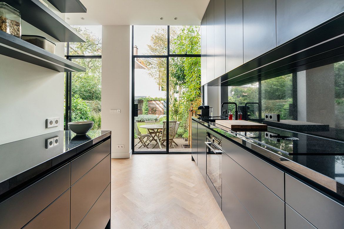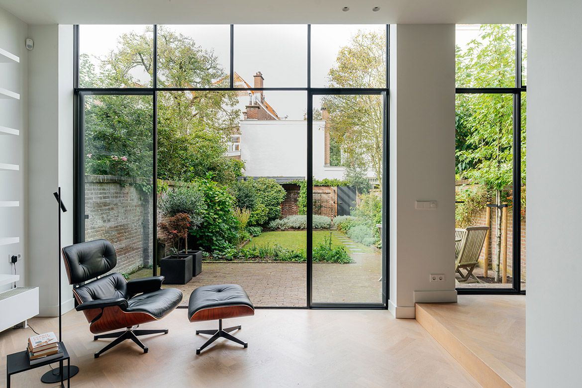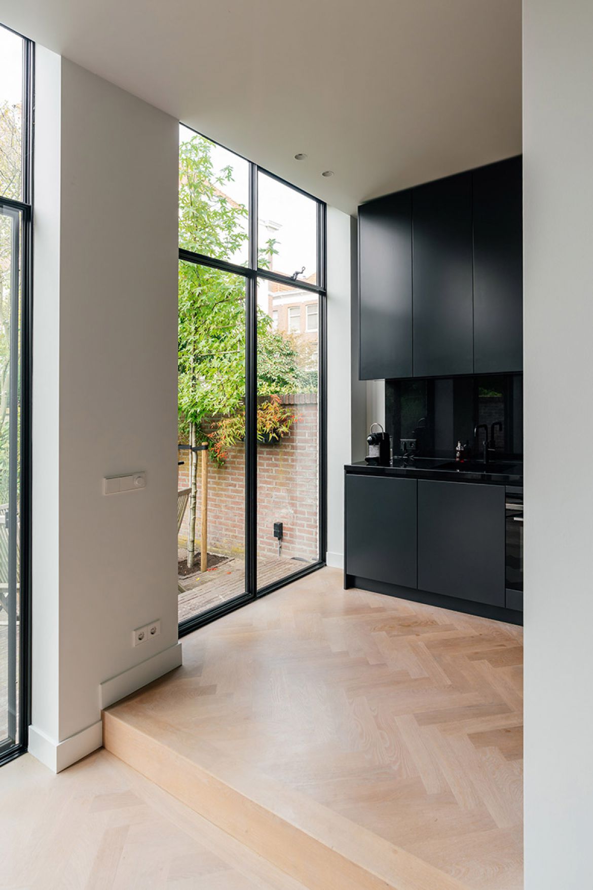 In hartje Den Haag renoveerden we dit statige herenhuis. Op de begane grond en eerste verdieping is de totale achtergevel vervangen door een nieuwe, goed geïsoleerde achtergevel voorzien van stalen kozijnen via Perfect View. De oorsponkelijk rommelige achtergevel, die voorheen bestond uit een drietal compleet verschillende etages met een veelheid aan soorten kozijnen, is nu vereenvoudigd naar een duidelijk leesbaar geheel. Hierin wordt de focus gelegd op de verticale lijnen in de gevel, en wordt de terugliggende gevel op de tweede etage weer in het geheel betrokken door het toepassen van eenzelfde stalen kozijn.