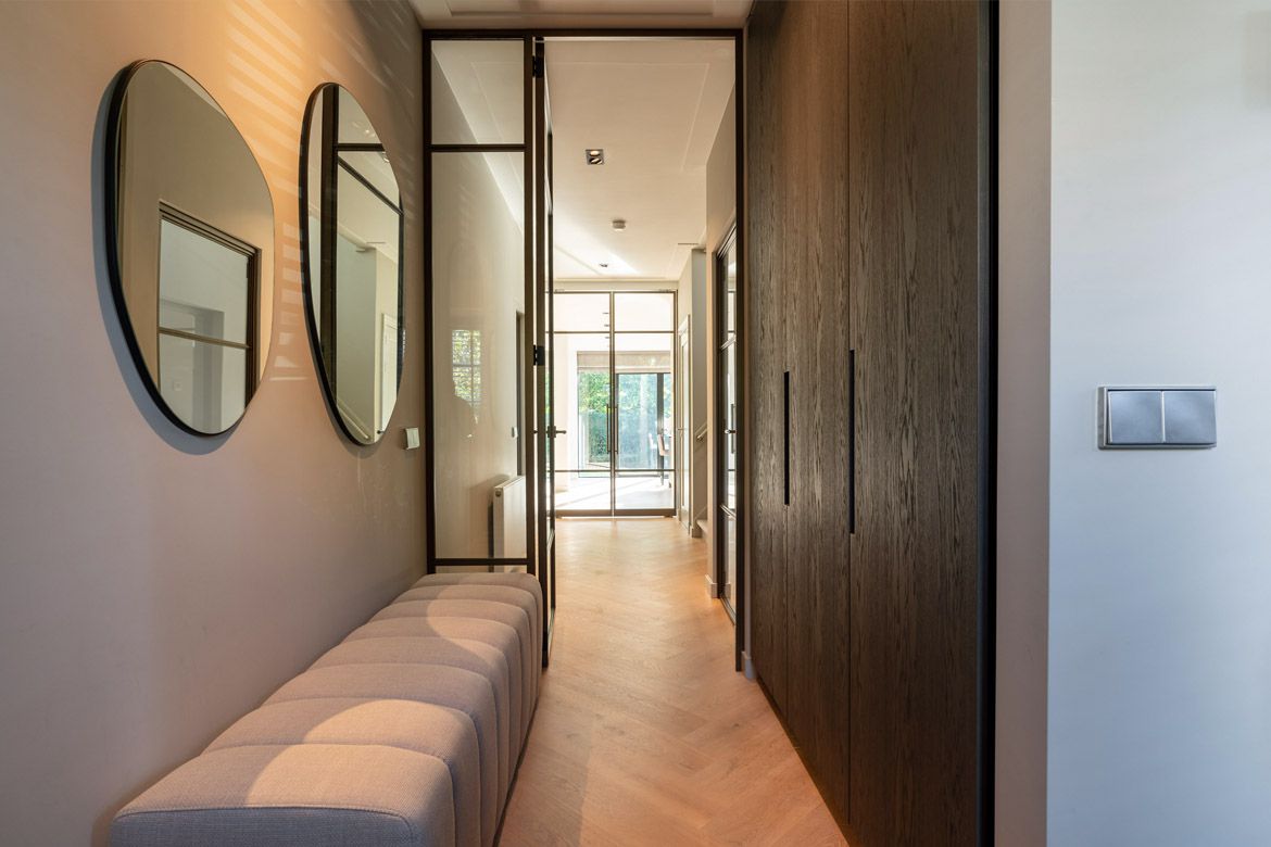 Voor dit werk begeleidden we het volledige traject, van voorontwerp, definitief ontwerp, selectie van de aannemers, maar ook de begeleiding gedurende de bouw en de integratie van ontwerpen van derden (badkamer, keuken, interieurbouw).